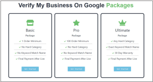 GMBEye expressly advertises that it can “[v]erify Google Business Without Postcard For All services” and “categories.” Through GMBEye’s website, Defendants solicit merchants and collect their information, such as their names, email addresses, business names, business websites, what each merchant “hop[es] to achieve with a new GMB,” and what the customer’s business goals are. GMBEye offers customers various packages of verification services, ranging from a “Basic” package to the “Ultimate” package.